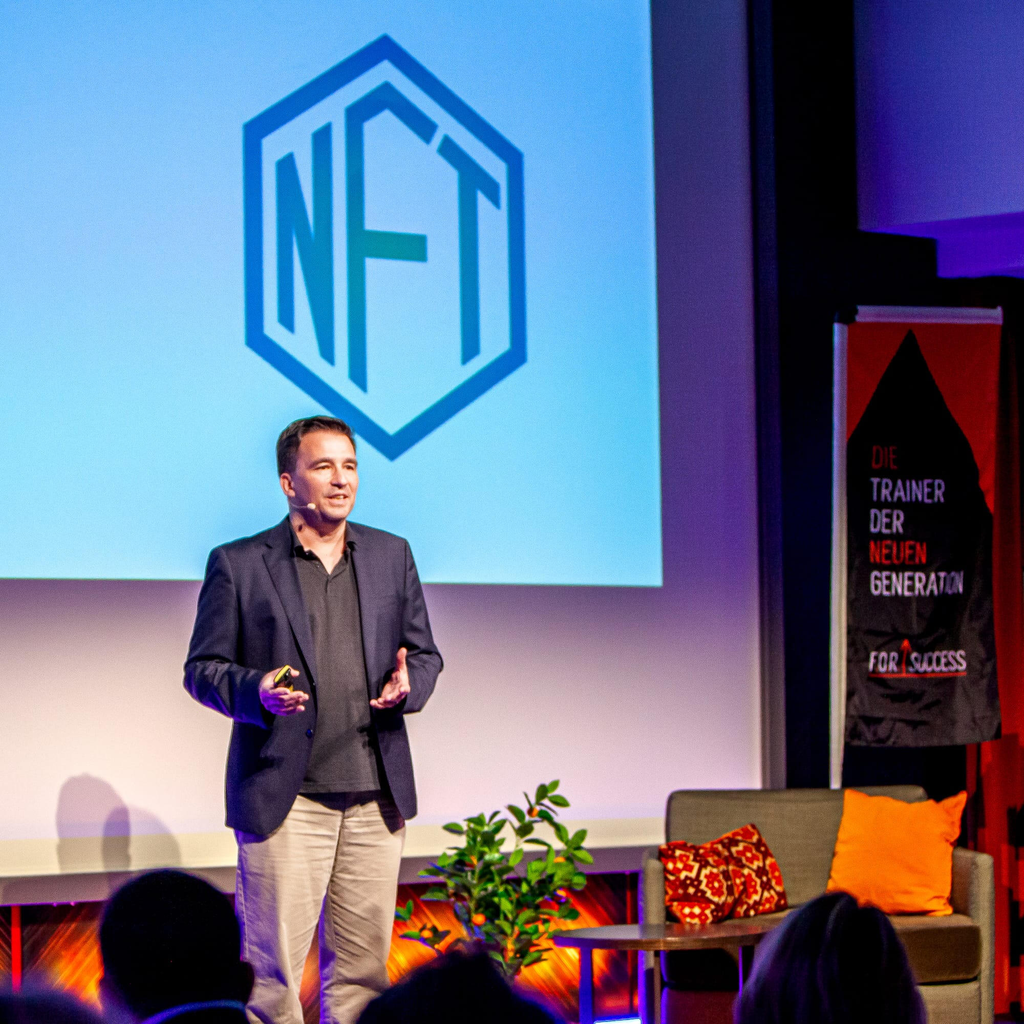 Some impressions of Berthold speaking and moderating at conferences like AIBC (Artificial Intelligence and Blockchain Conference), AGS (Affiliate Grand Slam), NFT.NYC and many other AI and Web3 events, sharing stage with people like Gary Vee, Peng Joon or T. Harv Eker: